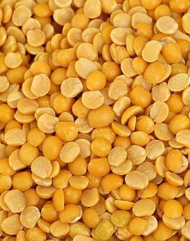 Split toor dal consists of small, flat, and half-moon shaped lentils.
